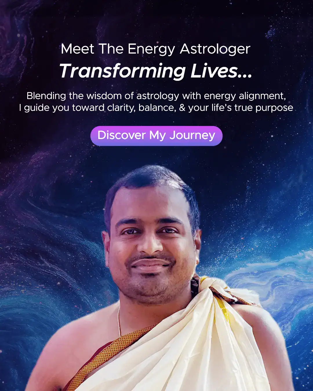 Welcome to the world of Chaitanya — a trusted name in astrology with over 12 years of experience and more than 6,000 happy clients across India. Recognized as the best astrologer in India, Astro Chaitanya offers life-changing consultations without the need for birth charts, date of birth, tarot, or face reading. His unique method focuses purely on energy-based readings, setting him apart as a famous astrologer in India.